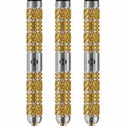 Harrows Atlantis Darts – Steel Tip – 95% – Anniversary Edition – Gold Titanium – 26g. To celebrate Harrows 50th Anniversary, these special edition darts have been brought back into their collection. Always a popular choice, they have been given a welcome upgrade to modernise the look with a golden titanium coating. Now it is a truly stunning dart. Each comes with the Anniversary Edition of dart flights and Harrows Supergrip Carbon shafts.