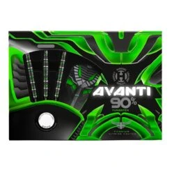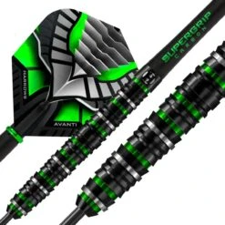 Created using the finest injection moulded tungsten, we present Avanti.Divided into 7 prominent grip zones, Avanti exhibits a variety of different cuts, resulting in a dart with a truly unique feel.Consistent along the length of the barrel, the grip composition on this dart suits its tapered profile perfectly. Avanti is a mid-balanced barrel suitable for all grippers; front, middle and rear. Following multiple coating and re-cutting processes, Avanti is presented in an eye-catching, three colour combination of black, silver and a stunning emerald green.Avanti darts are supplied with Midi Green Supergrip Carbon shafts, new Avanti flights and are match weighed to +/- 0.05g.