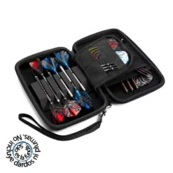 A slim, hard case providing protection for two sets of fully assembled darts, fitted with either traditional or fixed-wing flights. Accessory storage compartments too.