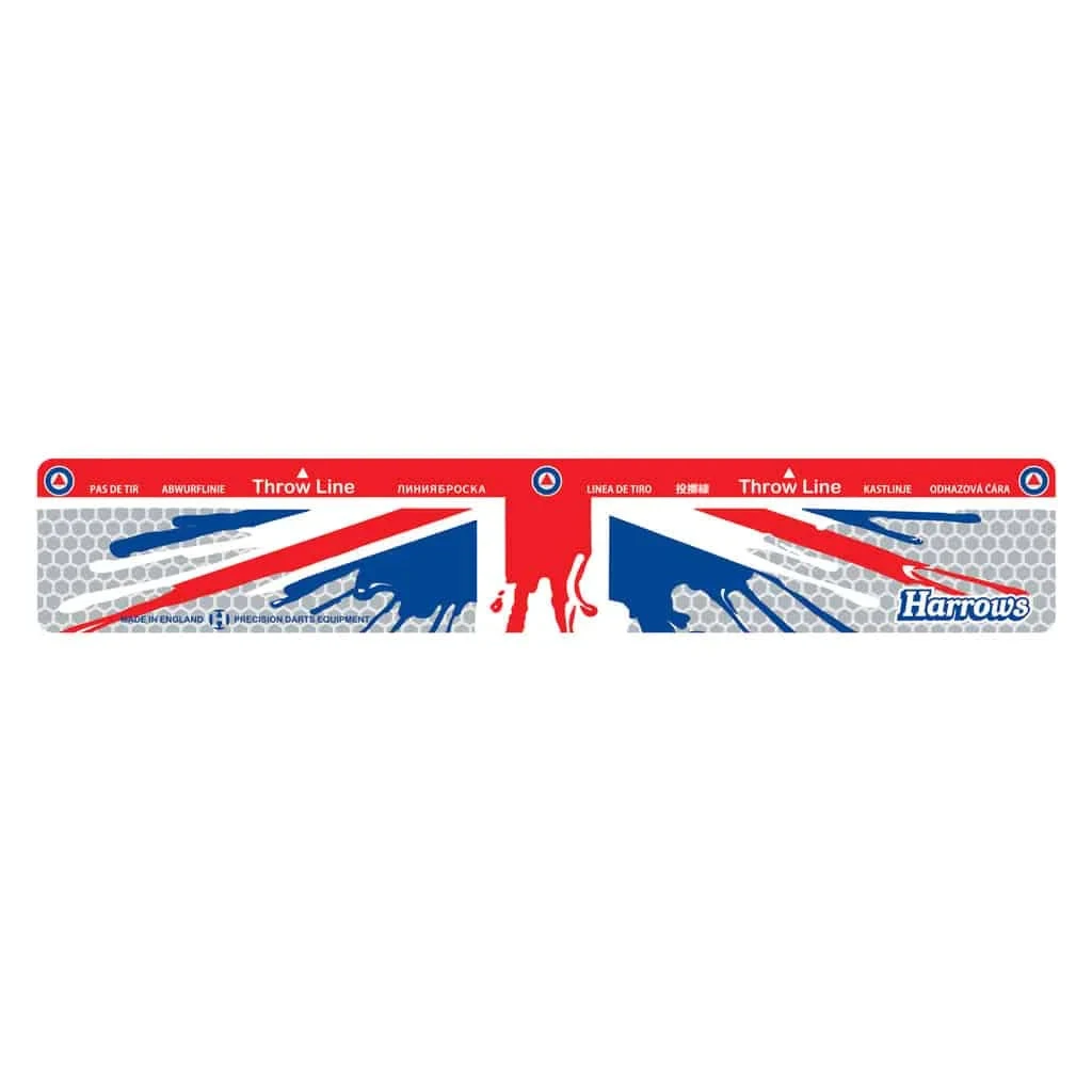 Harrows Heavy Duty Throw Line – Offers a Heavy duty material for an extra long life and increased durability over the competition. As well as the Graffiti Union Jack Design giving it a stylish advantage over other Darts Oches, Harrows Dart Oche Includes a clear marking for the throw line in multiple languages to suit the needs of 7 different nationalities not including English.