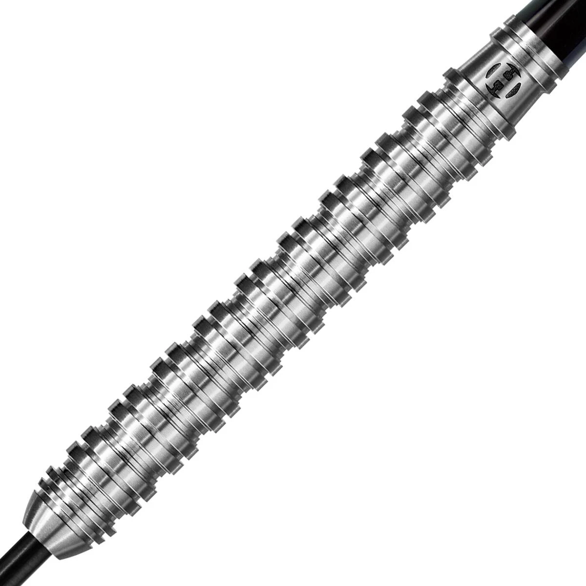 Revere is a well balanced parallel dart with a strong grip sequence along the length of the barrel. High quality 90% tungsten. Supergrip Fusion darts. 100 micron flights.