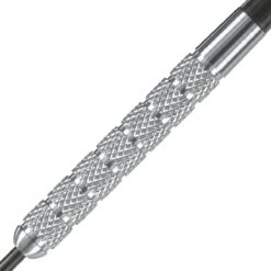 A traditional mid-weighted, parallel tungsten dart with precisely knurled grip zones. High quality 80% tungsten. Nylon shafts. 100 micron Prime flights.