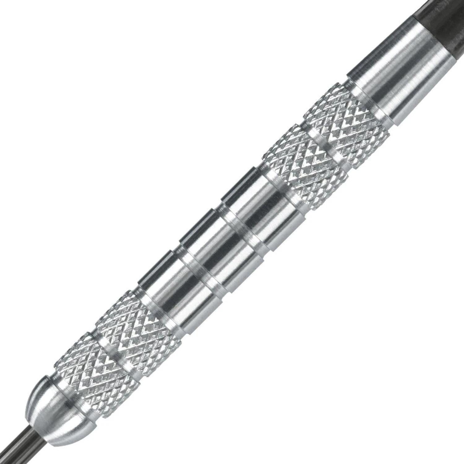 A traditional mid-weighted, parallel tungsten dart with precisely knurled grip zones. High quality 80% tungsten. Nylon shafts. 100 micron Prime flights.