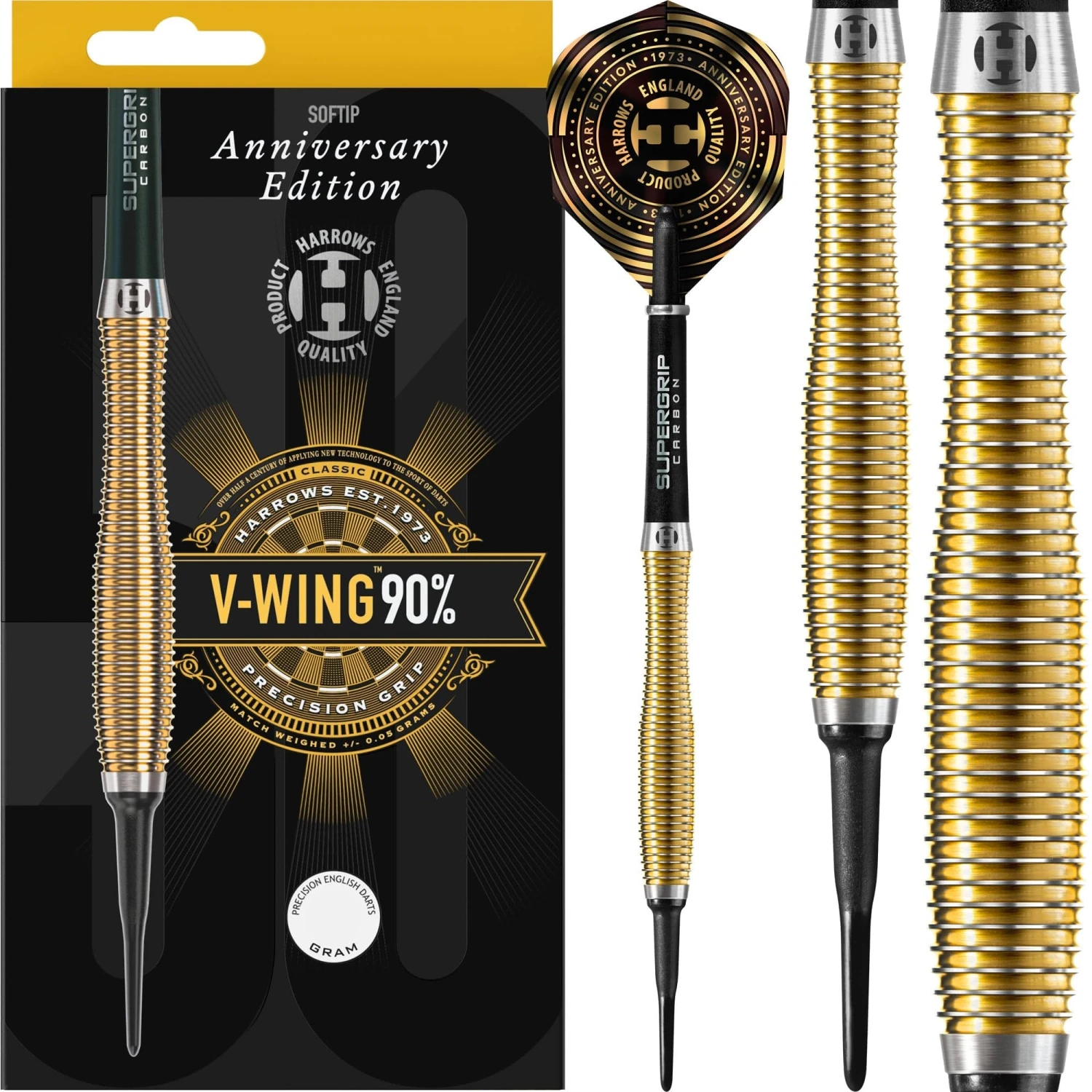 Harrows V Wing Darts – Soft Tip – 90% – Anniversary Edition – Gold Titanium