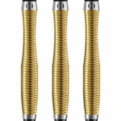 Harrows V Wing Darts – Soft Tip – 90% – Anniversary Edition – Gold Titanium – 18g. To celebrate Harrows 50th Anniversary, these special edition darts have been brought back into their collection. Always a popular choice, they have been given a welcome upgrade to modernise the look with a golden titanium coating. Now it is a truly stunning dart. Each comes with the Anniversary Edition of dart flights and Harrows Supergrip Carbon shafts.